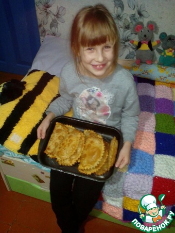 Слепить чебуреки. Как это быстро сделать, подробно рассказано в моем рецепте "Зеленые" чебуреки".