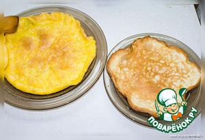 Делаем 2 таких блинчика. Обязательно цельных. С рваными будет не удобно в дальнейшем.