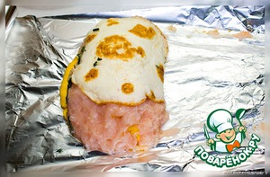 На фарш кладём блинчик из желтка.