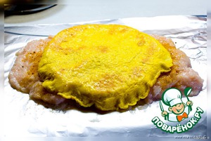 Выкладываем блинчик из белка на фольгу.
