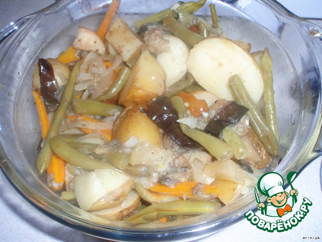 Выдавить чеснок. Залить вином. Хорошо перемешать, закрыть крышкой