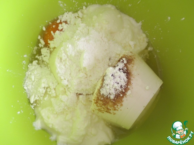Рекомендую начать с начинки. Миксером смешать до однородности риккоту (500 гр), йогурт (300 гр), 1 яйцо, 1 белок, 40 гр кукурузного или 25 гр картофельного крахмала, сахар (50 гр) и ванильный сахар (11 гр).
