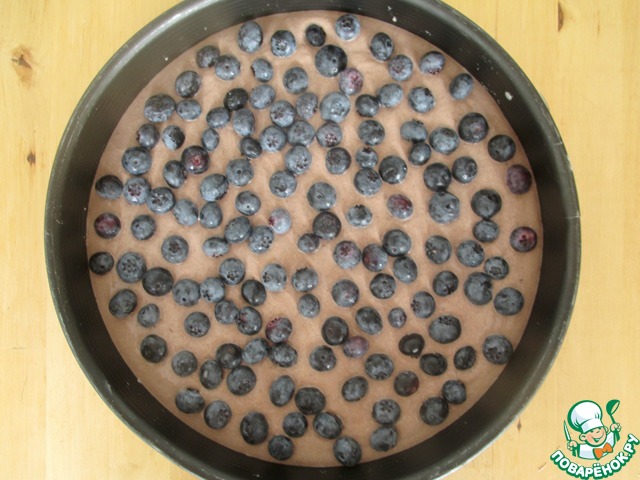 затем выложить 200 гр заранее вымытых и просушенных ягод. -