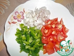 • Мелко нарезать помидоры, болгарский перец и лук.
