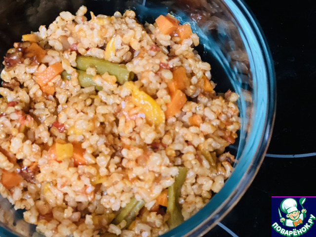 • Когда количество воды значительно уменьшится ( у меня через 15мин) все перемешать, чтобы овощи равномерно распределились, и больше не трогать до готовности.