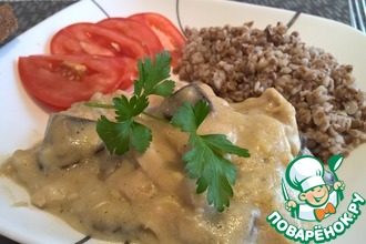 капуста + лук + морковь + рис + филе куриное, все режется измельчается, когда немного протушилось, перемешиваю и заливаю водой с томатной пастой, солю, перчу, и на маленький огонь, тушу около часа.