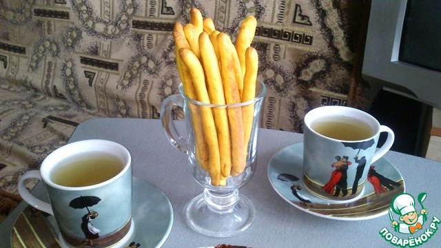 Раскатанные палочки выкладываем на подготовленный противень. Ставим выпекать при температуре 190 градусов в течении 20 минут до образования румяного цвета.