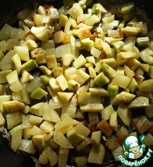В небольшом количестве оливкового масла обжарьте в течении нескольких минут авокадо и кубики перца.