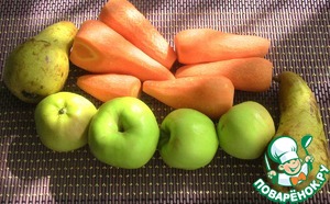 Все что нам надо для замечательного, яркого и полезного сока это яблоки, груши и морковь. Количество указано примерно.