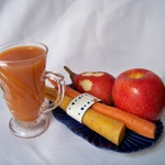 Из фруктов и моркови отжать сок.