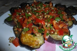 6. У меня в холодильнике оставались фаршированные шампиньоны и я присоединил их к баклажанам. Такой рецепт закуски из баклажанов станет хорошим компаньоном для блюд из картофеля.