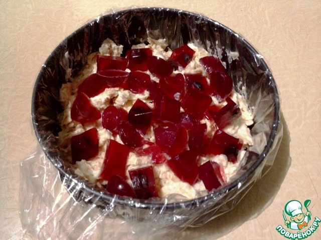 • Приготовьте желе из сока смородины, используйте вторую половину ингредиентов.