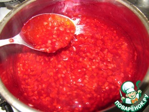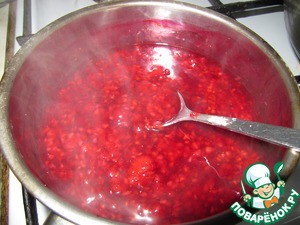 Приготовить малиновый соус: ягоды малины залить водой (2/3 стакана), добавить сахар и поварить 2-3 минуты.