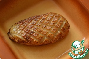 • 1. Грудки вымыть. обсушить, приправить солью и перцем. На коже сделать надрезы, прорезая не до конца