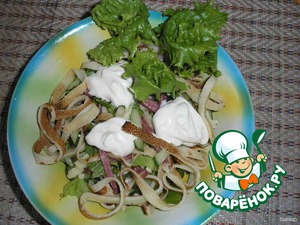 Нежные блинчики, пропитанные майонезом, придают салатику неповторимый вкус...