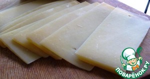 Сыр тонко нарезать. Можно натереть.