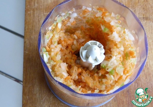 Овощи измельчить в блендере.