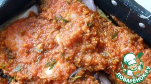 Поливаем соусом. И ставим запекать 30-35 мин в духовке разогретой до 200 градусов.