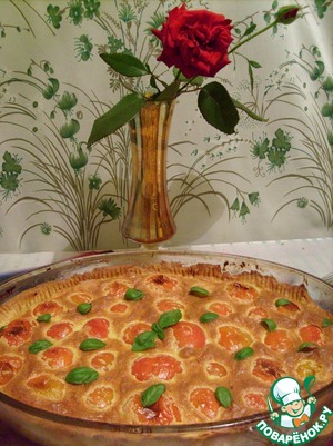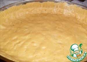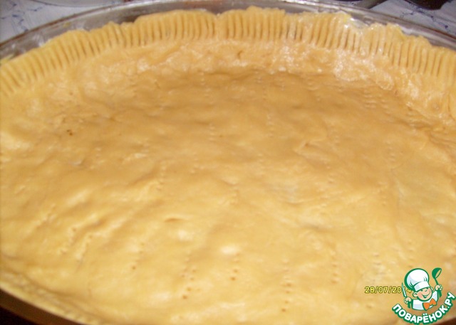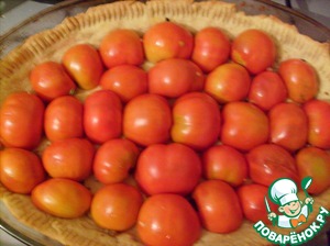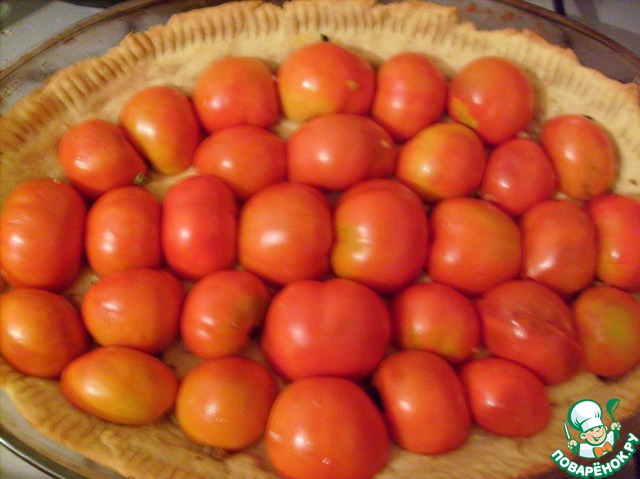 Тем временем наше тесто охладилось как следует, и мы можем приступать к следующему этапу - выпеканию основы для нашего пирога. Для этого необходимо наше тесто раскатать толщиной около 7 мм, положить в смазанную маслом и присыпанную мукой форму таким образом, чтоб сформировались ботики высотой, равной половине размера наших помидор. Во ка сказала! :D