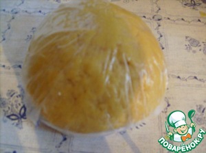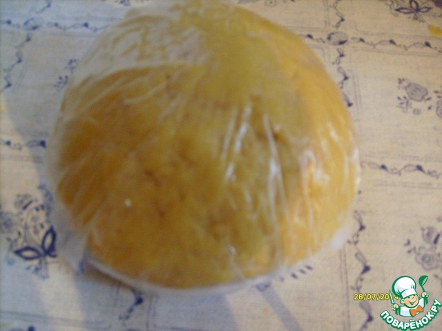 Затем сформируем из него шар, завернем в пищевую пленку и отправим на 30 мин. в холодильник.
