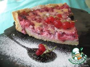 Для начинки – смешать сливки, яйца и сахар до гомогенизированного состояния. Смородину разложить по поверхности коржа и равномерно залить сливочной смесью. Она должна покрыть ягоды примерно на 2/3, в процессе выпечки высота ягод и заливки сравняется.