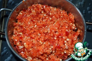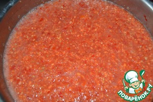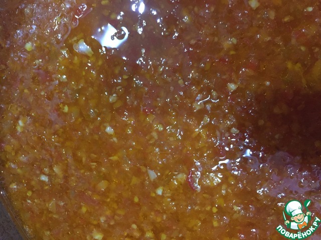 все эти ингредиенты пропустить через мясорубку (я в комбайне все это дело перемалываю) и варить 2.5 часа -