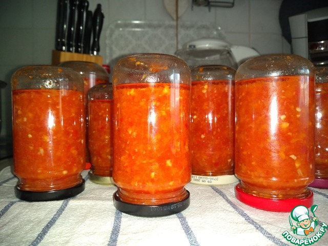 Приготовила сегодня аджику по вашему рецепту... брала всего половину продуктов т.к. пустых банок не хватало.