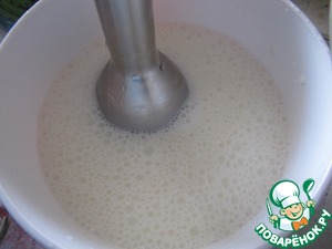 Кислое молоко взбить с сахарной пудрой в пышную массу.