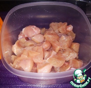 Филе режем на кубики (средние по -размеру)