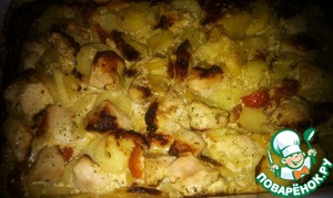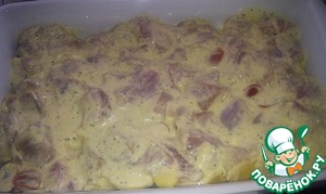 Заливаем картошку нашей уже настоявшейся индюшкой и ставим в духовку (180- 200 g)