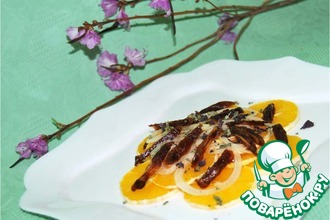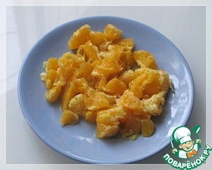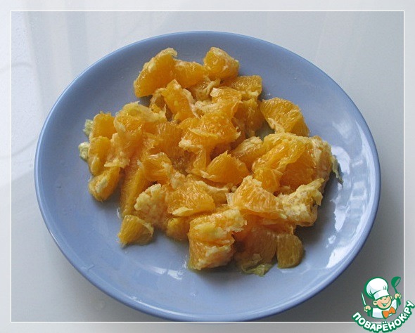 • Апельсины очистить от пленок, разделить на кусочки.
