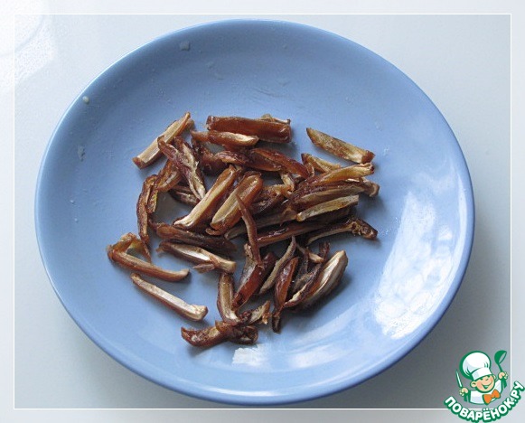 • Финики нарезать тонкой соломкой.