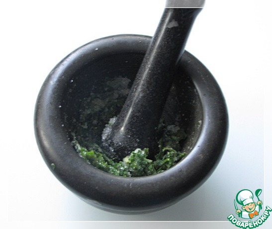 • Мяту мелко порезать, добавить сок половинки лайма, сахар, истолочь в ступке.