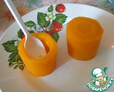 Морковь отварить. Охладить и очистить. Нарезать на кусочки, у меня вышло 5 кусочков. В каждом кусочке с помощью ложечки сделать углубление.