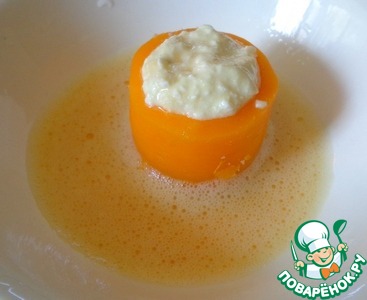 Обмакнуть морковь в яйцо.