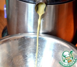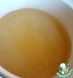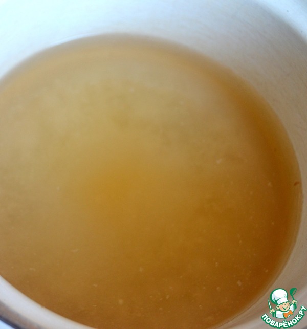 Варим сироп - сахар заливаем 2 стаканами воды, варим до загустения, добавляем растворенный желатин, снова доводим до кипения.