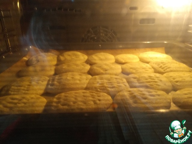 • 7. Выкладываем получившиеся печеньки на лист, смазанный мукой или небольшим количеством масла.