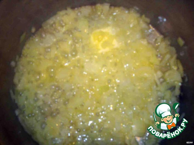 Разогреваем в кастрюле слив. масло и припускаем в нем лук до прозрачности.