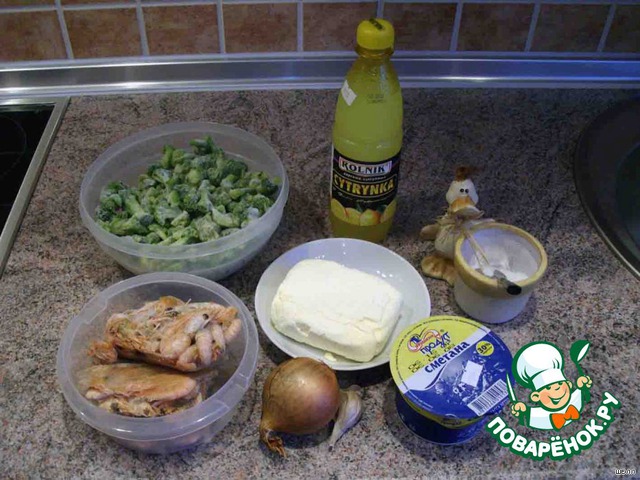 Ингредиенты для «Суп-пюре из брокколи с креветками»:
