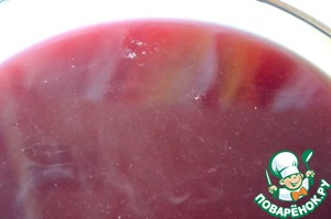 В горячий отвар выливаем сироп и разведенный крахмал, кладем имбирь, варим до загустения, смешиваем с соками