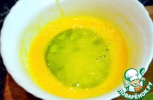 Яйцо взбить венчиком. Разогреть жир в сковородке. Окунуть помидор в яичную массу