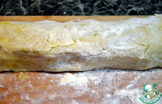 Замешиваем тесто. Скатываем тесто в рулет толщиной пять сантиметров.
