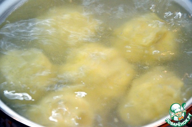 Выкладываем шарики в кипящую подсоленную воду. Варим на слабом огне 10-15 минут. Вынимаем и обсушиваем.