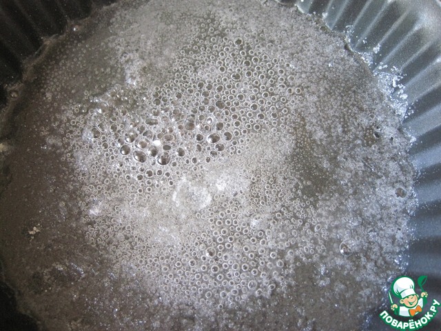 Я ни чего не перемешивала, только временами перемещала форму над конфоркой, что б сахар плавился равномерно. Как только сахар растворится и начнёт менять цвет, убираем форму с огня. Пусть застывает карамель. ВАЖНО не передержать карамель на огне, иначе она будет горчить.