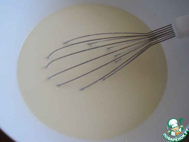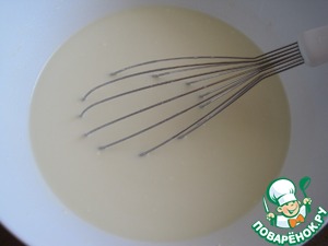 Я сначала перемешала сухие ингредиенты, потом вмешала яйца и струйкой медленно вливала воду, размешивая всё венчиком. что б не было комочков. По рецепту с сайта было указано 600 мл воды, но мне показалось этого много. Поэтому у меня 500 мл. Крем получился жидкий.