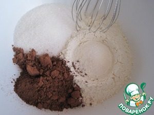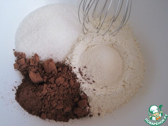 И наконец, бисквитный слой. Здесь такой же принцип-сухие ингредиенты смешала отдельно, жидкие отдельно.