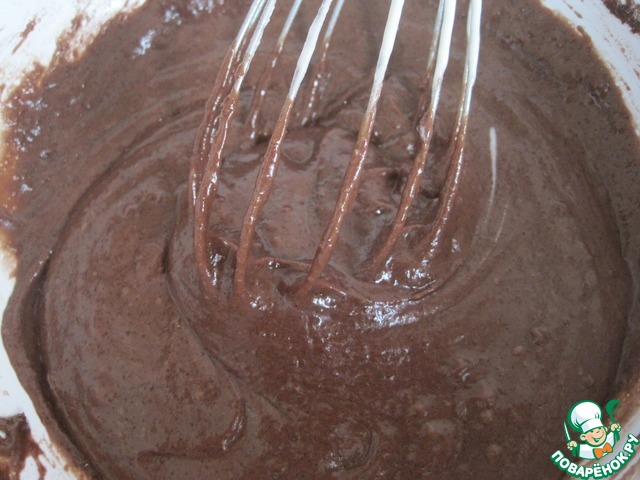 И соединила всё, размешивая венчиком. По консистенции получилось "текучее" бисквитное тесто.