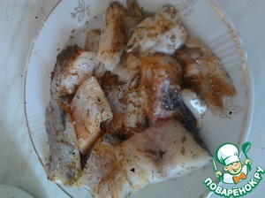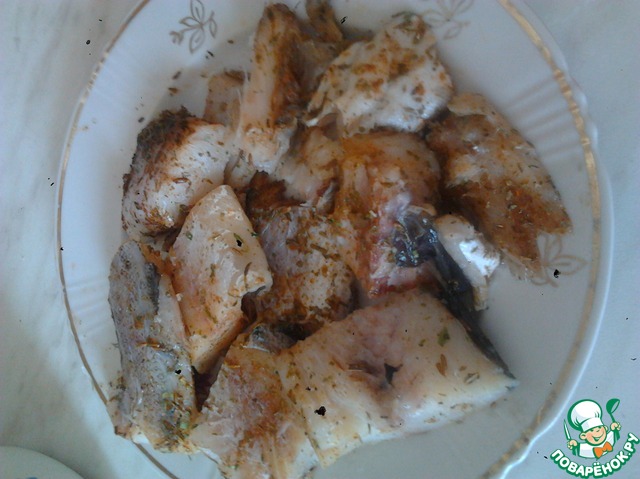 • Рыбу помыть, очистить, нарезать на кусочки, посолить, поперчить
