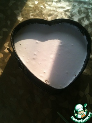 Тесто будет, как густая сметана, выливаем его в разъемную форму и ставим в разогретую духовку до 190 градусов, выпекаем 20-25минут. Готовому изделию даем немного остыть. -