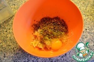 Натереть на терке картофель, смешать его с зеленью, яйцом и гречкой (воду слить).
